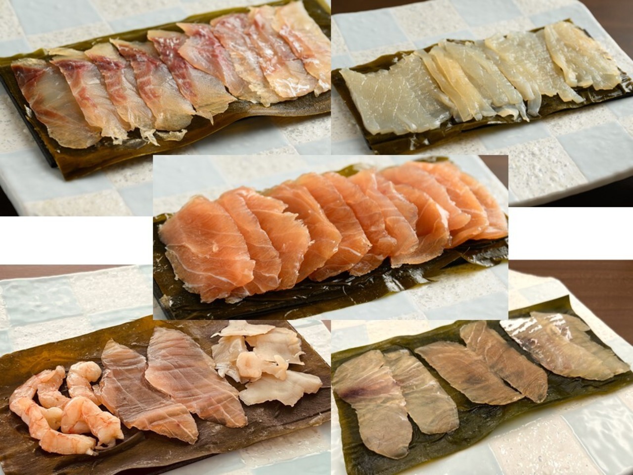 ④⑤人気の三種セットの昆布締めです。味を比べてもよし、一人で晩酌やおかずでたべるもよし。